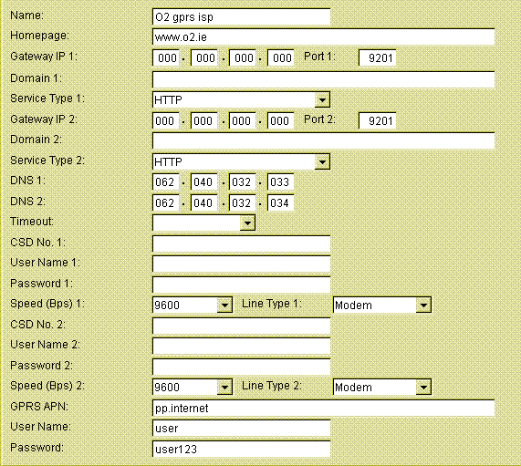GPRS parameters: Login: My Password: ISP APN isp.mymeteor.ie
