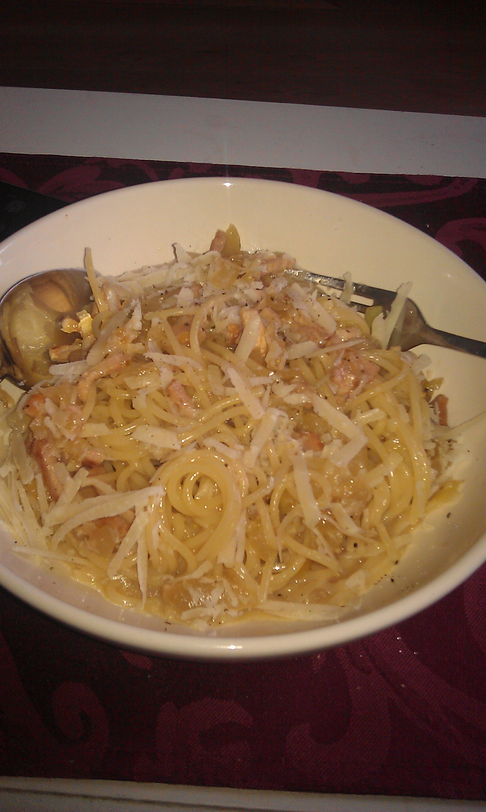 I had carbanora, can't have cream so made the sauce with just egg and parmasan