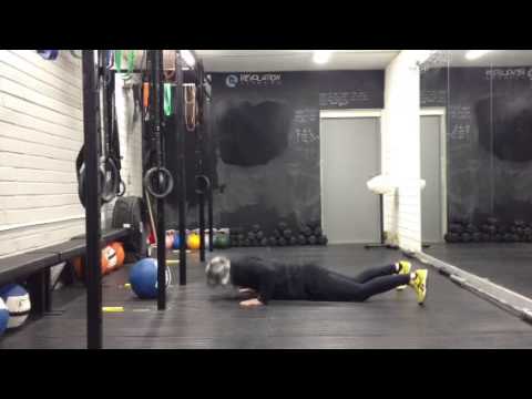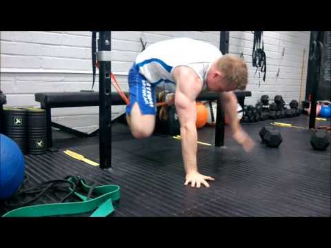 same as the sprawl, except chest to floor, bounce to feet, clear ground and get hands overhead