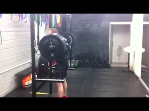 Massive LOL here. Did not expect that to happen. Only decided I'd squat about an hour before, and that I'd put a belt on to see what the craic was on the way to the gym. Felt pretty decent except for getting thrown wildly out of shape a few times (watch the second reps). Based off bar speed, and with my act together, I'd say I'm good for triples.