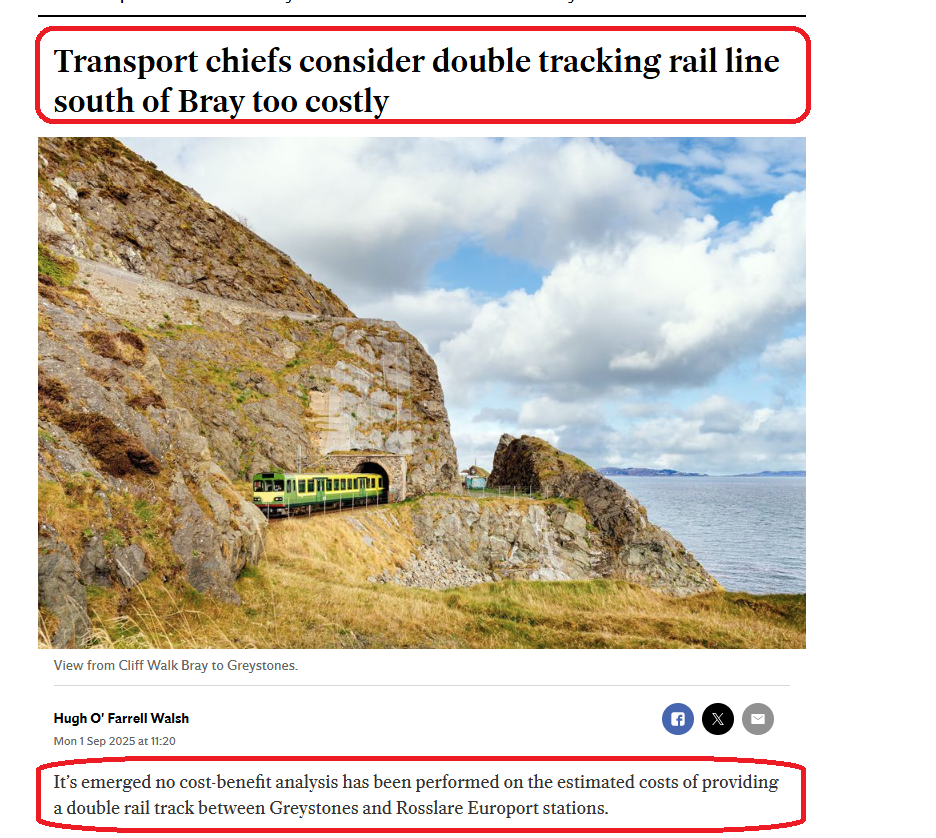 Likely more bang for their buck for the NTA to spread the investment between the N11 bus lane, moderate Greystones DART improvements / DART shuttle and a Luas over the next 15 years. They’ll greatly improve South Eastern connectivity, sort out the Sandyford issue and provide a direct UCD connection. I still think the Bray Head tunnel is worth considering based on the potential there though and also as a risk mitigation against Brunell’s folly falling into the sea. My point here would be that if it costs a net €200m to improve services a lot and you mitigate that risk, is it not worth just biting the bullet on that in the next decade and a half?