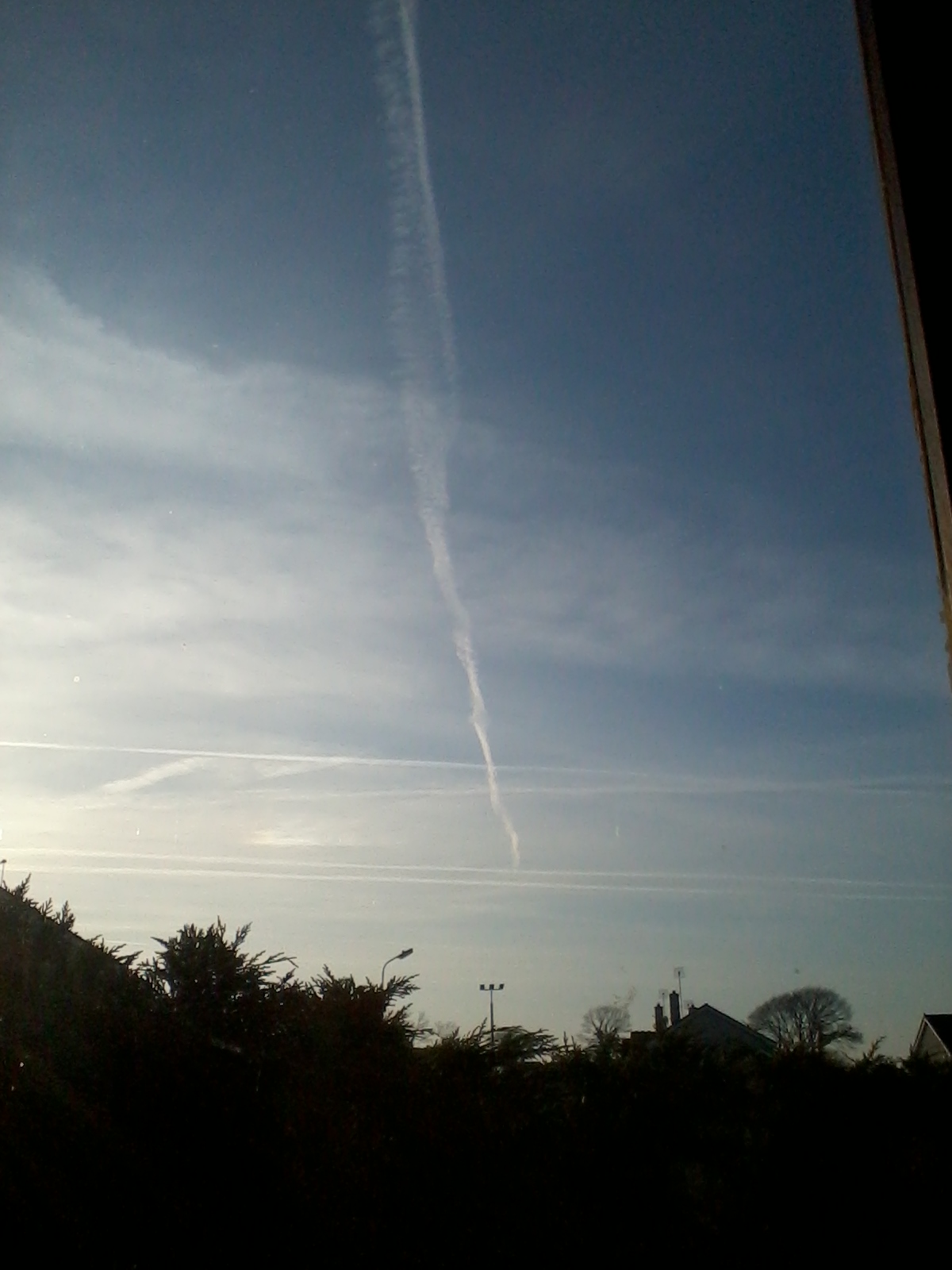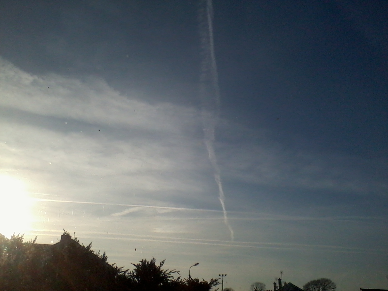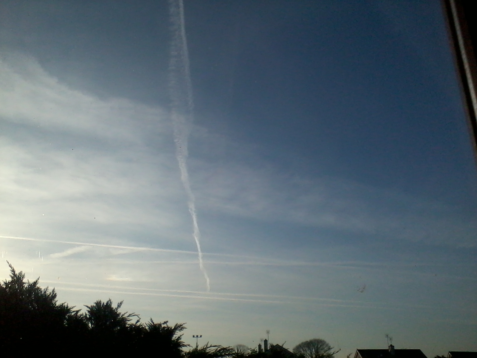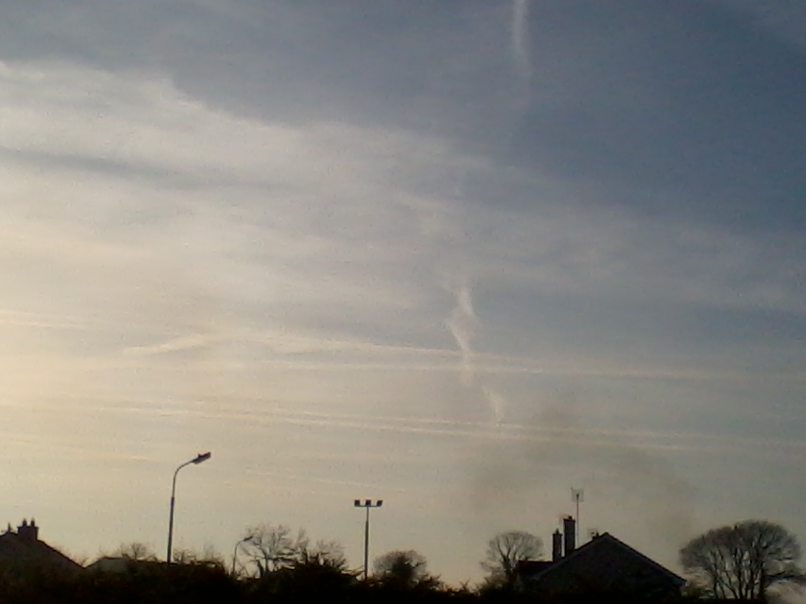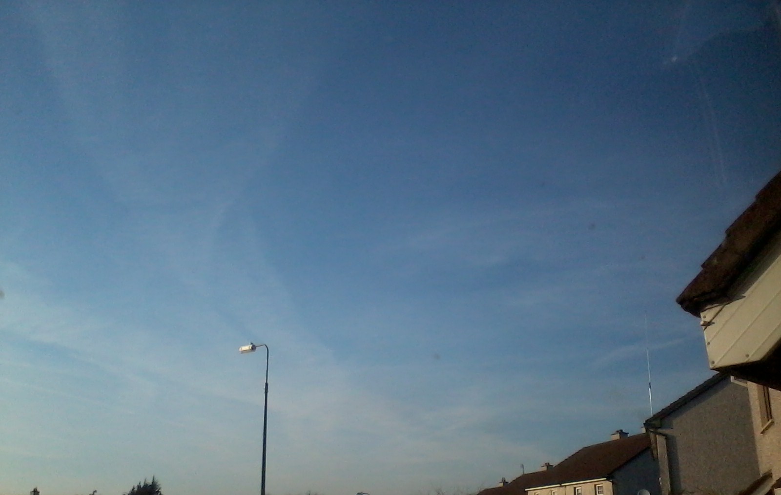 Naas not exactly a hotspot for plane spotting the guy that took them got his camera out because of the frequency of the planes overhead which he found most unusual he kept snapping because what he bilieved to be contrails began spreading out over the sky