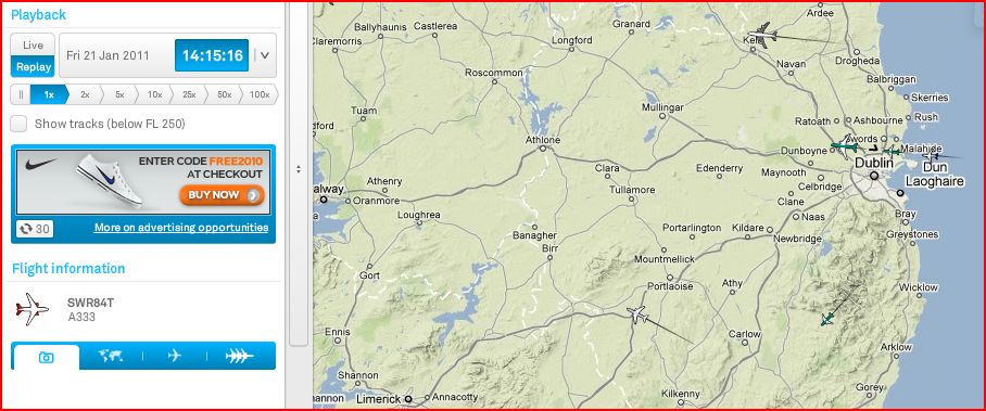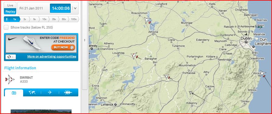 So im asking you to show me the flight paths that intersect over a small area of Ireland even two or three even at different altitudes at the same time or within a minute of each other surely if it is so normal due to heavy air traffic it wont be too hard.