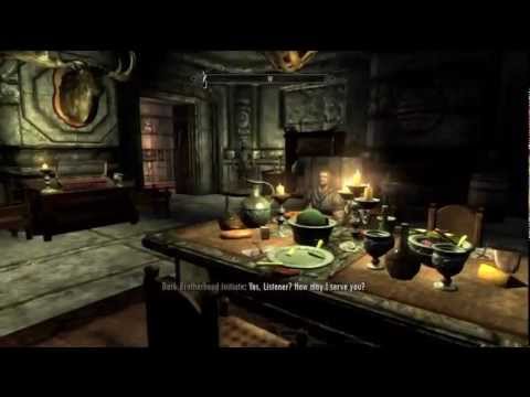 Doing the Dark Brotherhood questline right now. I was going to do the Thieves Guild first, but then Brynjolf decided he was never going to move from the market in Riften so I can't start it - hopefully they fix that soon. :(