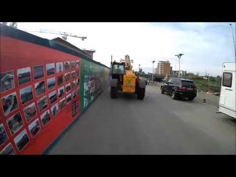 I don't really see what the problem is here. The JCB had to stop once it rounded the corner as there was a car in the way.