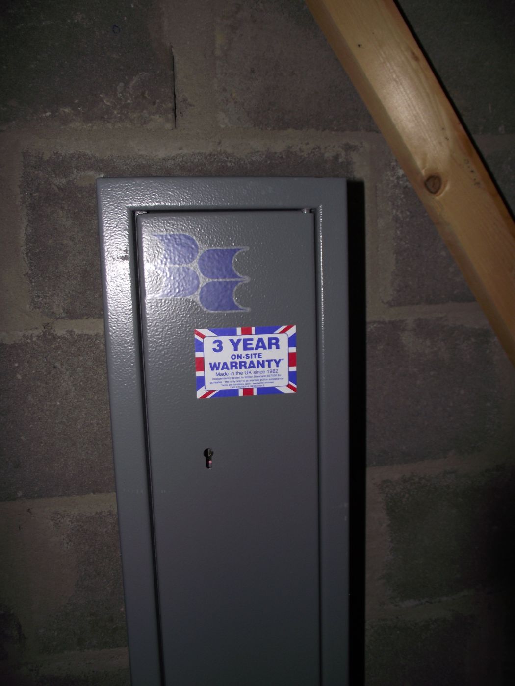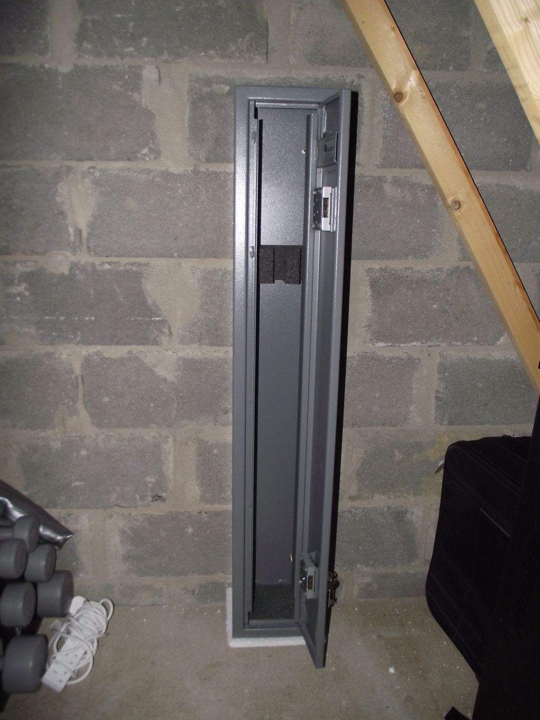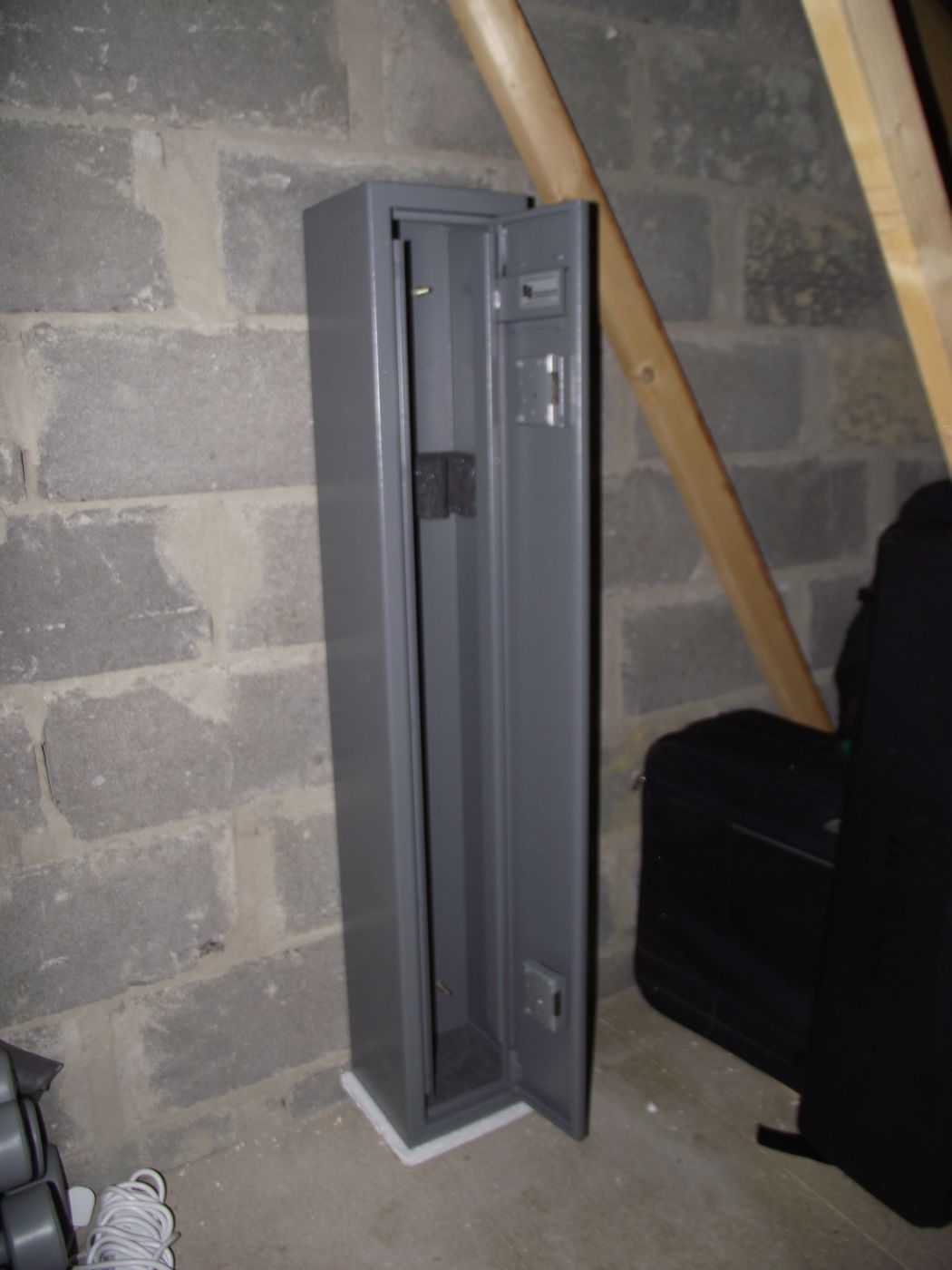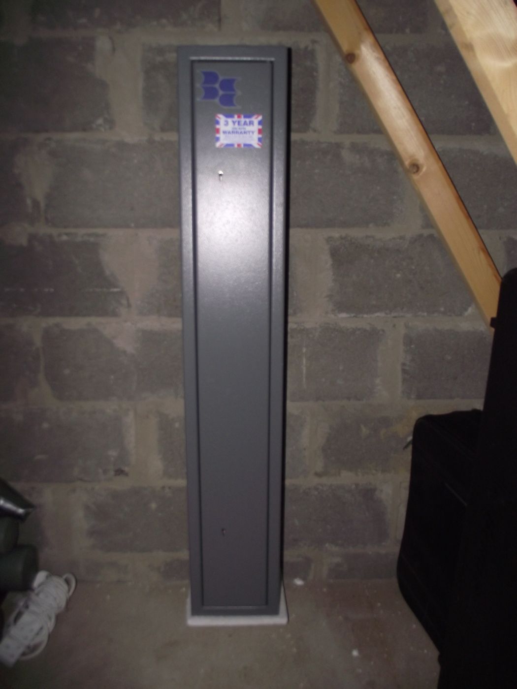 I had a Shotgun & a .22 scoped Rifle in this Safe, the scoped rifle just has to be turned 90degrees and it fits fine, but yep 3 shotguns will fit perfectly, or 1 shotgun and a scoped rifle turned.