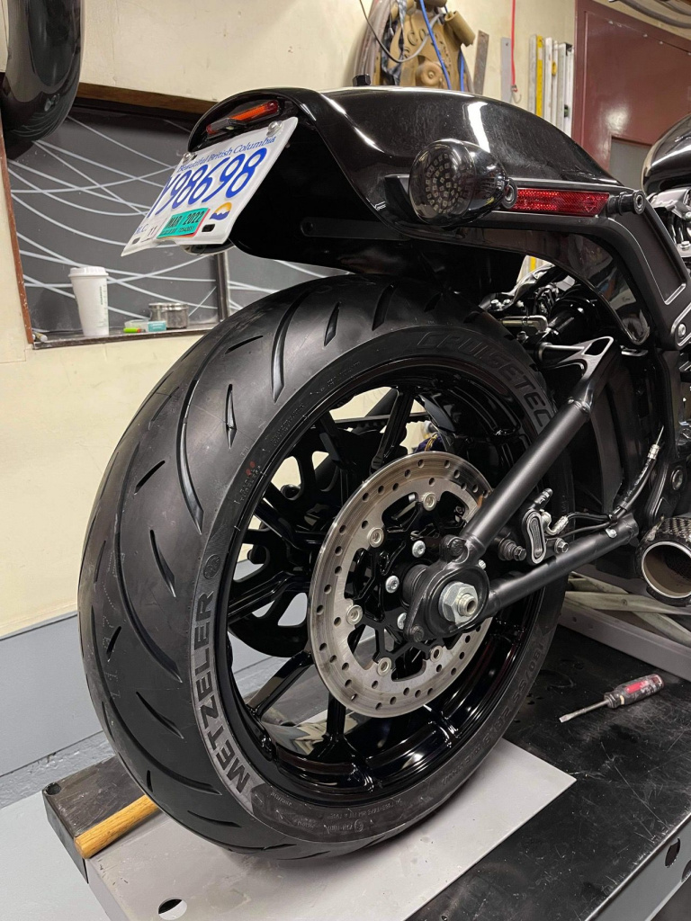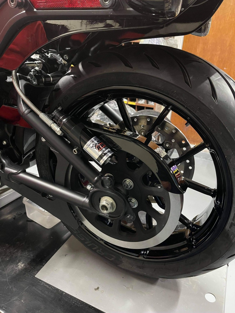 New rear shock and rear wheel installed on my Fat Bob. Went with an RWD shock, the stock one from HD is like a plank of wood or sponge depending on the setting.
