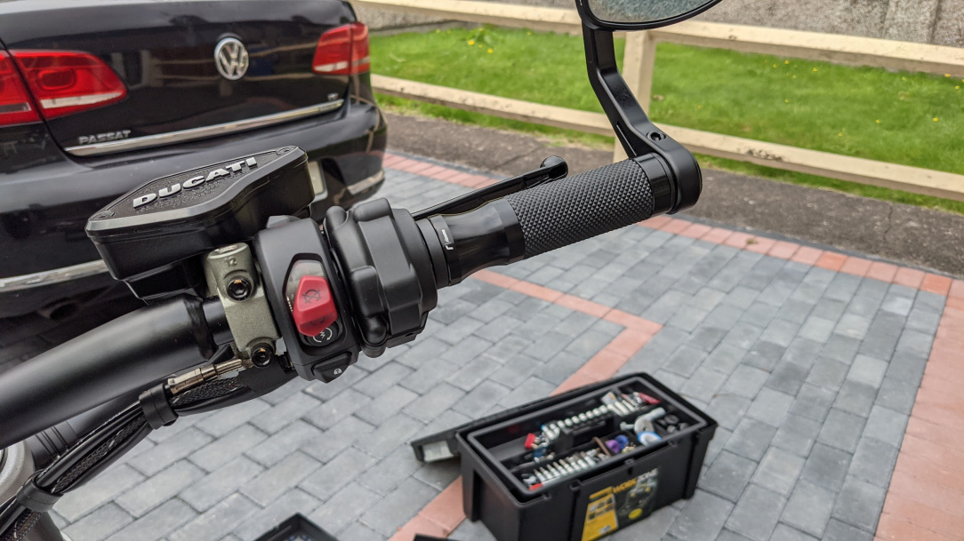 Picked up a set of anti tamper bits and got to work, for some reason Ducati left a huge gap at the end of the left side of the handlebar. This is one of those little things that drives me nuts.