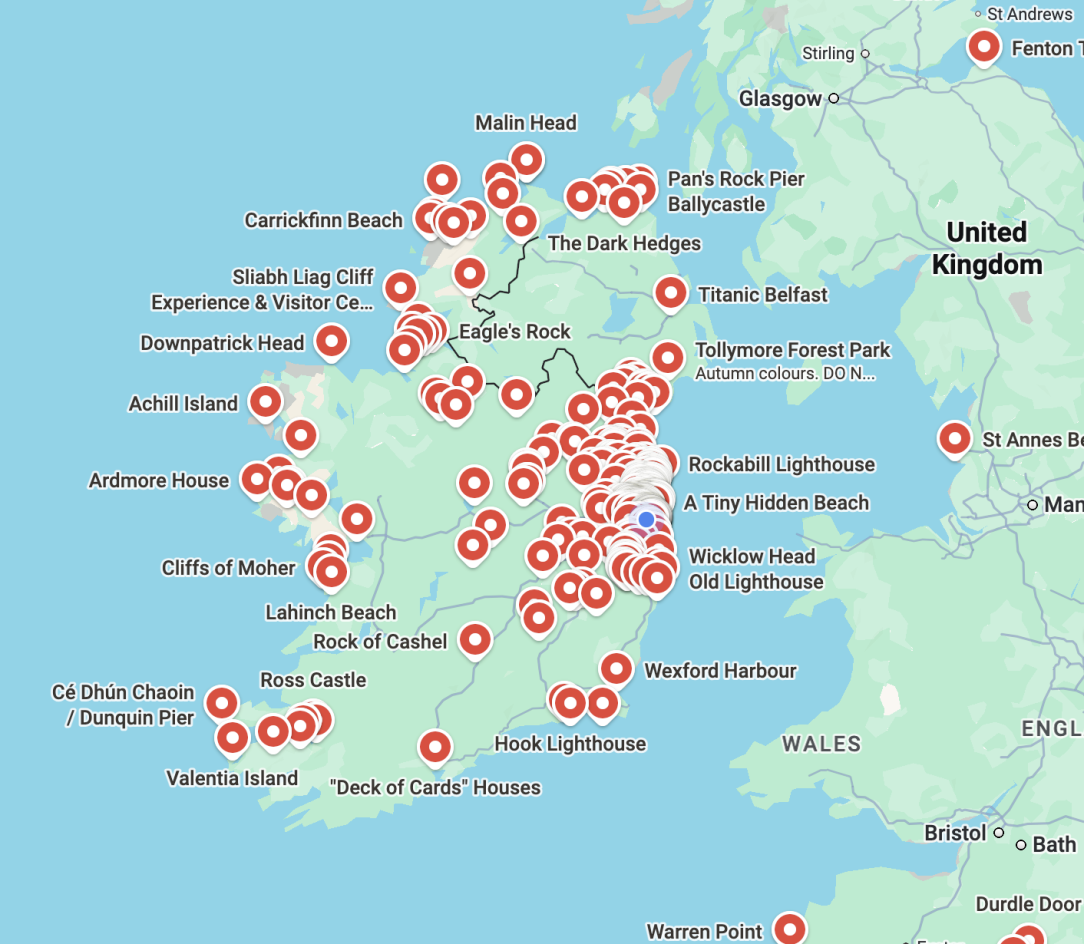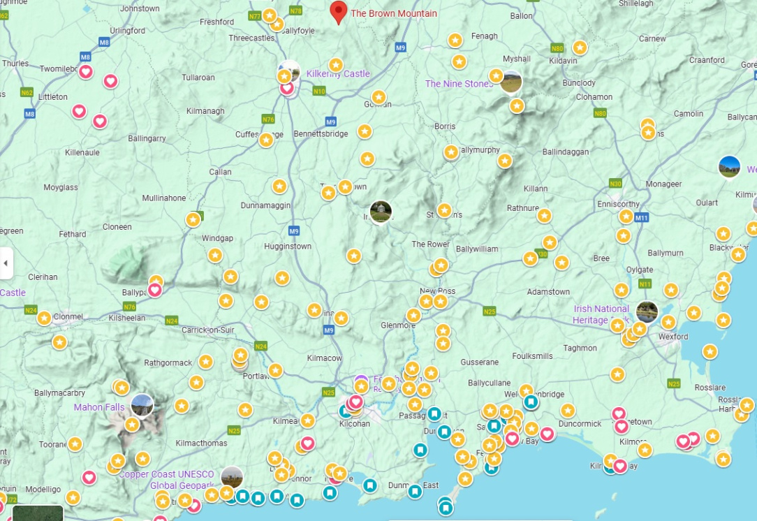 That's my area's to visit etc. eg dolmens, beaches, photographic area's. Handy when using google maps on car nav system.