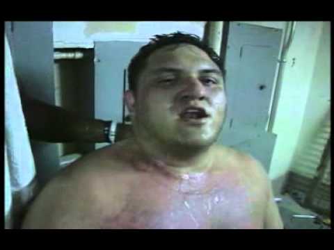 Yokozuna enters the steam room for a pre match steam. Once he is inside Mustafa Saed appears and has a kilo of cocaine with him. He cuts it open and pours the powder into the vents of the steam room and disappears before anyone can see him.