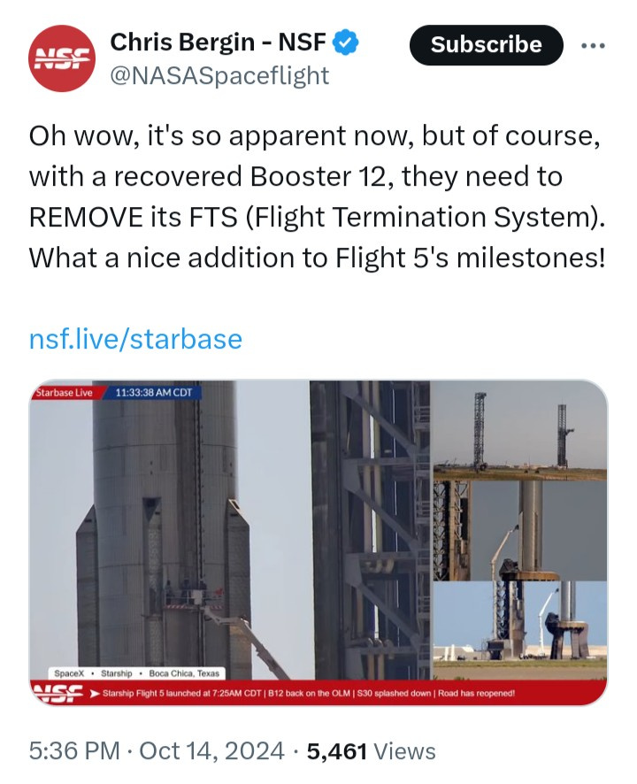 @SpaceX Targeting Sunday, October 13 for Starship’s fifth flight test. A 30-minute launch window opens at 7:00 a.m. CT →