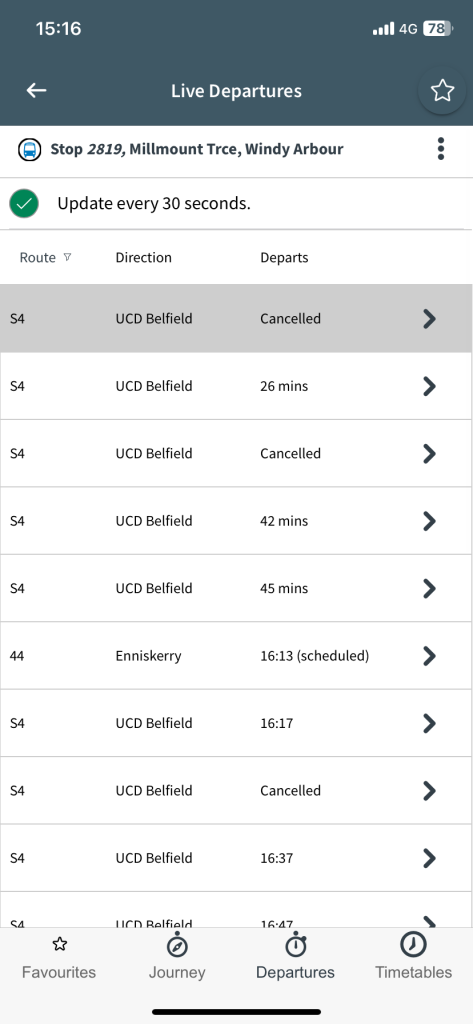 I did notice that they have moved the driver changeover for UCD S4 services to stop 2182, which is closer to the 73 terminus. They tend to park in the Aldi carpark now. They used to park by Eurocycles and then changeover at stop 2181.