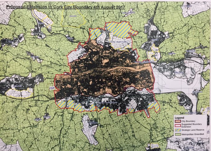 No boundary extension for 52 years, and cork county council is feasting from the city i.e. 90% of industry is based in a 10 mile radius from the cork city. I rember Cork City corpation looking for a boundary extension in early 80s to build the huge housing estates they were building at the time and been refused i.e. (Lotamore in Mayfield a Coraption estate built on County Council land) Also there was at that time a lot of city industries were moving to greenfield sites on the edge or just outside the city boundary (Pouladuff,Togher,Churchfied City Docks moving to Ringaskiddy ) Ballincollig Blarney Glanmire Douglas at that time were towns where some of my family and friends went or were forced to live as building land in the cork city was scarce making buying a new house very expensive. cork county council stopping a boundary extension since the 1980s has made cork City THEIR cash cow i.e. Population in a 3 mile radius from the city boundary is equal if not bigger than the city, almost all new industry will have to be built there due to lack of land 90% of this growth has happened since the80s . cork City is the reson for all this growth and should be given a boundary extension with enough land to plan for the next 50 to80 years.