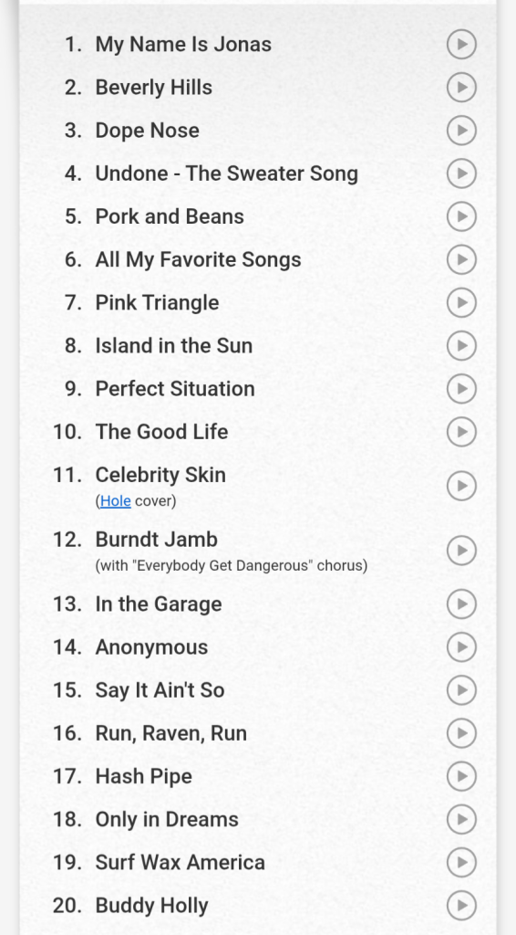 I saw Weezer play their entire Blue album + a few more of their hits before Smashing Pumpkins in the 3Arena last year. And they were only brilliant. Way better than Smashing Pumpkins. 😁 Enjoy. Nice evening for it too.