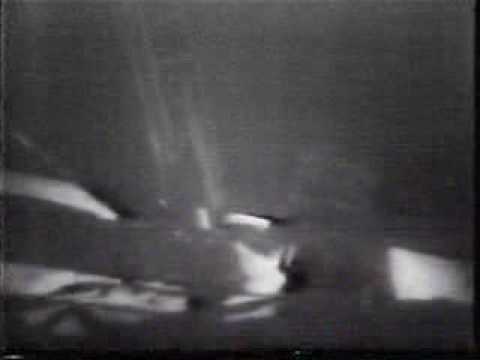 He paused for a while at the foot of the ladder (standing on one of the 'footpads') and told Mission Control: 'I'm at the foot of the ladder, the LEM footpads are only depressed in the surface about one or two inches'.