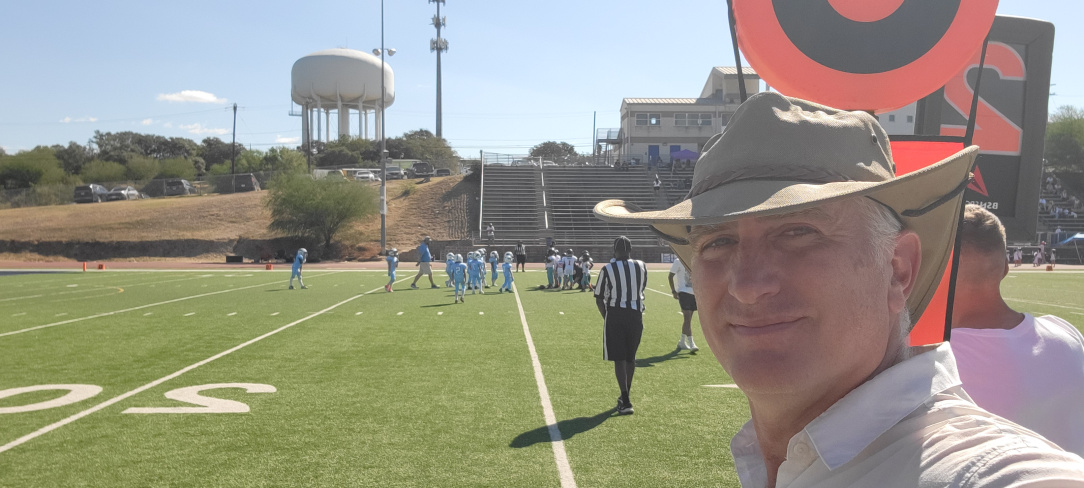 What we didn't realize was just how much of a religion and how damned seriously American Football is taken in these parts. Flag was a sort of social thing set up by the YMCA, but turned out that friend's dad was running a Texas Youth Football & Cheerleader Association league team. There are about 600 in the state.