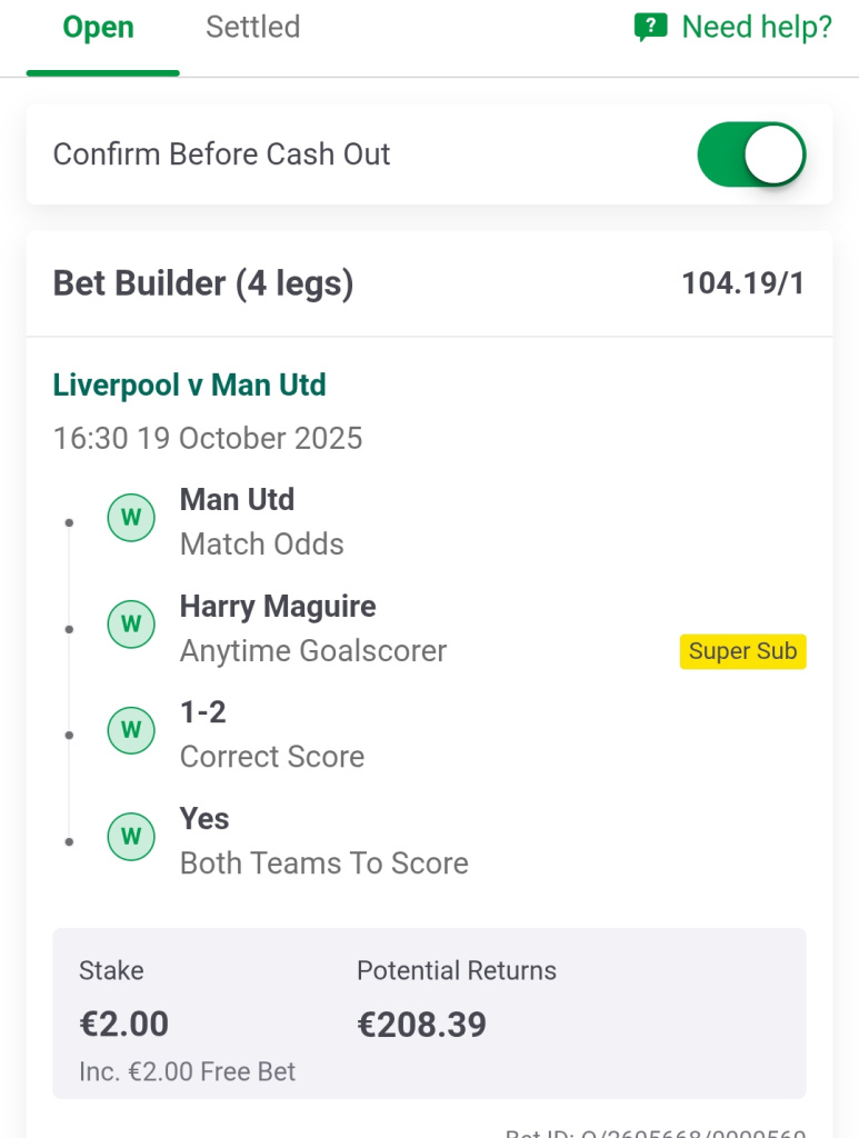 Man Utd/Matheus CunhaTo Score or Assist/Sasa Lukic Player to be Carded/Bruno FernandesPlayer 2+ Fouls Won/Kenny TetePlayer 3+ Fouls Committed