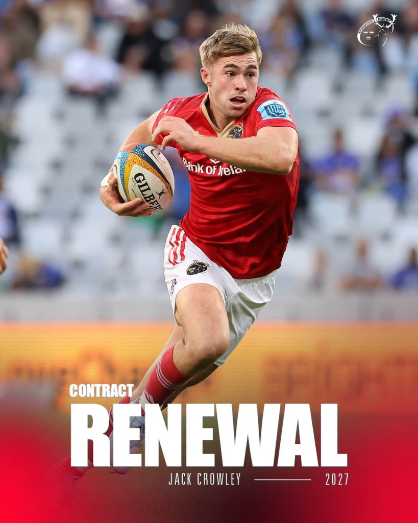 2 year contract from Crowley irfu and Munster great news and well deserved