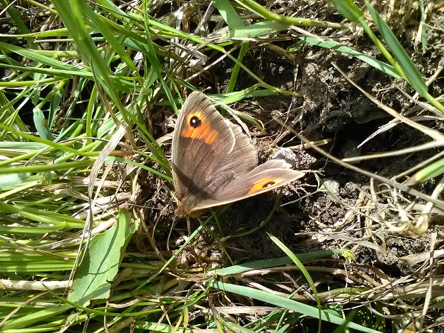 Small Tortoiseshell and Meadow Brown, clinging on in the wind this morning - took a while waiting for the wings to open out.
