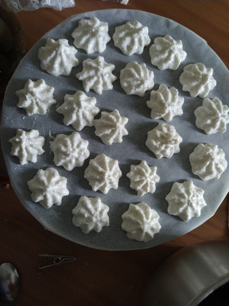 The first batch of cooked meringues was excellent and would have been better with a proper oven.