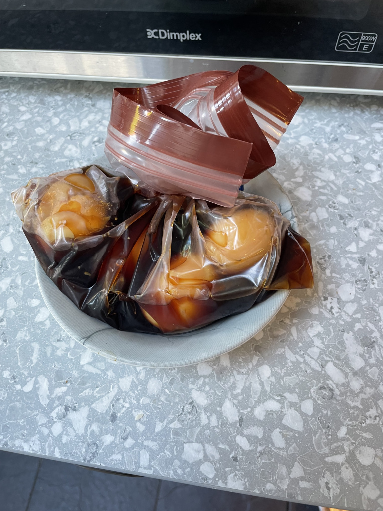 Our daughter mentioned that the eggs in her ramen from the local Japanese takeaway were really good so I looked up a recipe and did it.