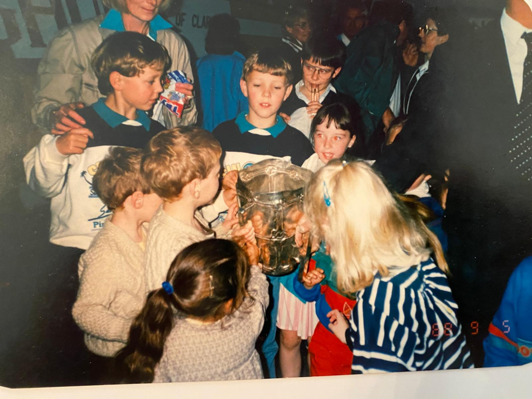 i only became aware of this photo today, while i consider myself a Waterford man, i grew up all over the place , the almost 3 year old me is the one in the red pants obscured by the blonde head ,this was in galway after the 88 final .