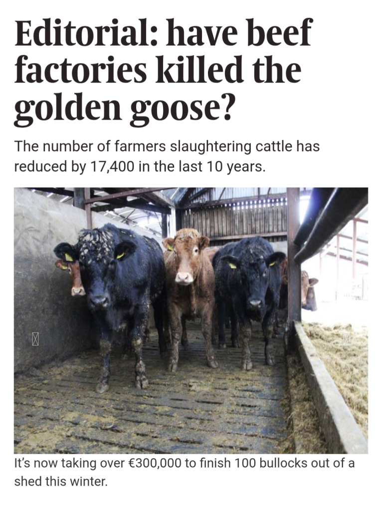 I agree with you but why are farmers still paying subs to farm orgs when they seem to achieve very little only draw soft money off farmers, this misinformation or incompetence by bord bia should be highlighted everywhere as this information affects lads decisions as to when they should buy or sell cattle like 2 to 3 weeks ago their were factories getting cattle at 7.10 base price yet 2 weeks later they can pay flat prices of 7.80 to 8 euro, the lads that sold 2 weeks ago must be real happy to now find out that the kill figures will now remain lower than expected