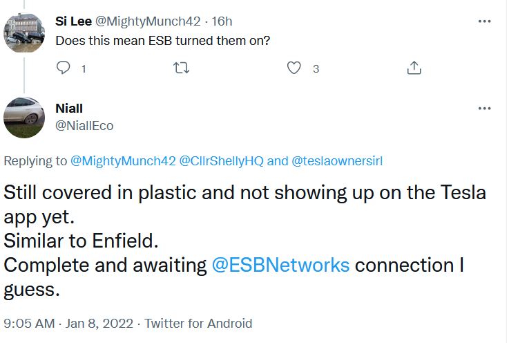 Selfishly I'd love a SuC site on the M3 as I live 10 minutes from there. But I think Tesla would be better served putting one on the m9 at Gorey, the existing ones in the works at enfield, sandyford and galway, and maybe one near Sligo to cover north west.