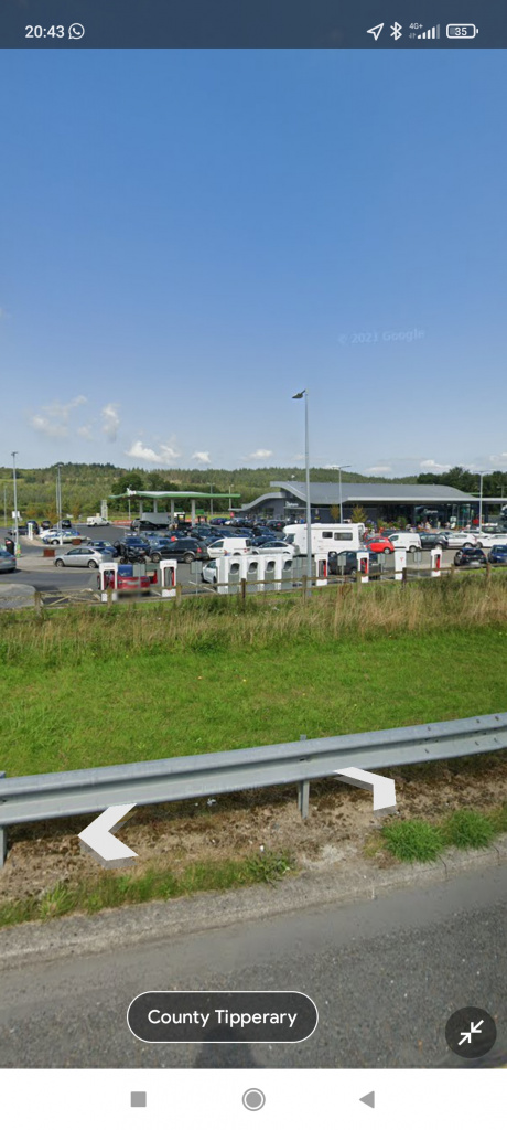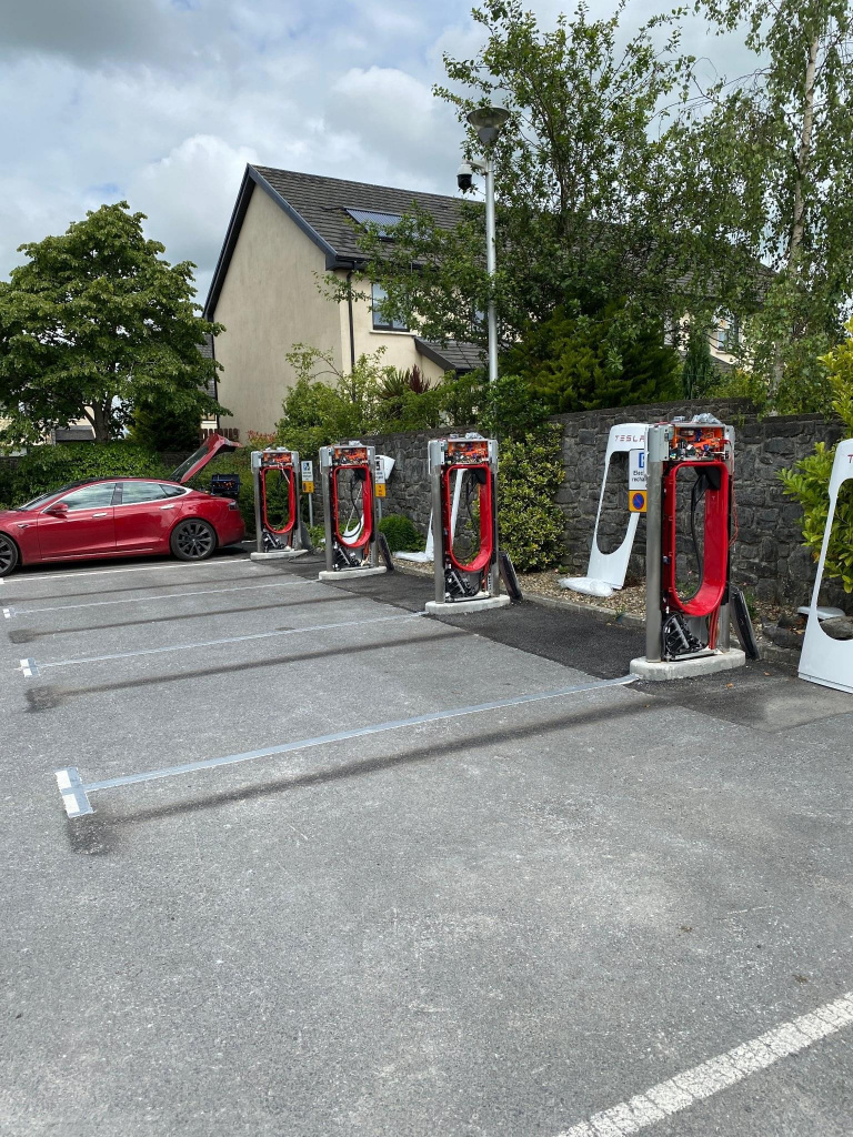 Did a pit stop at Birdhill this afternoon. 3 model 3s one not plugged and 2 ICEs parked. I think I paid 40c/kWh.The non Tesla chargers were both free when I arrived then an MG5 was connecting when I was leaving.