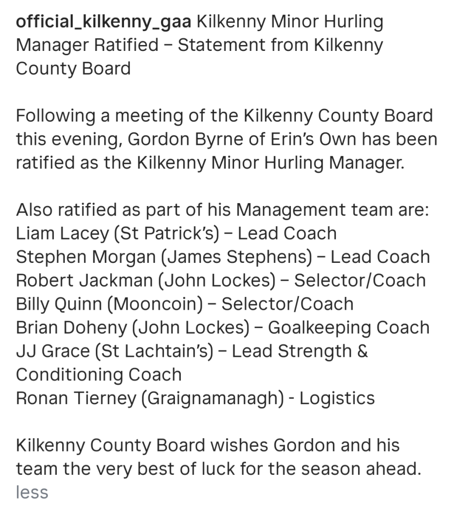 For a team struggling in Junior Craig Phelan is an outstanding hurler for Slieverue and might be another player having a look at.