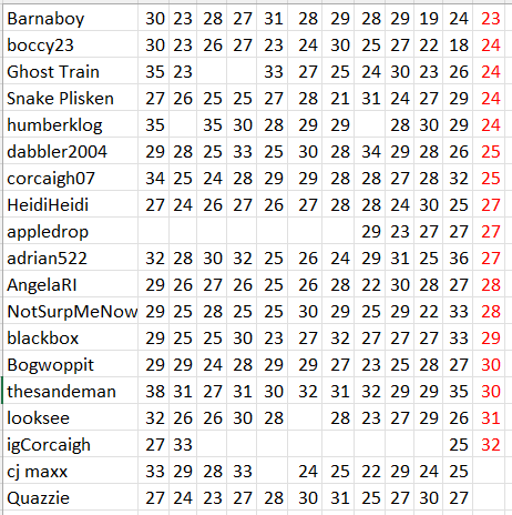 And commiserations this week go to @igCorcaigh, spooning all by themselves on a lowly 32….. 🥄