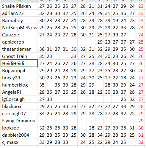 Commiserations to @cj maxx, bringing up the rear on 32 - onwards and back upwards with you!