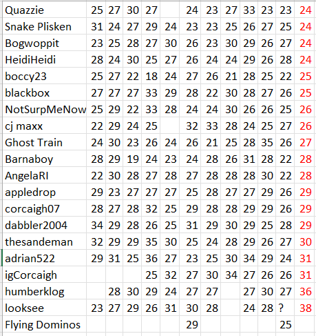 @humberklog and @looksee bringing up the rear with fairly spectacular scores (but I think there were a few missed days on both parts).