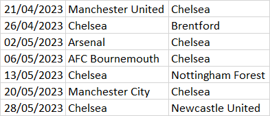 was listening to a chelsea youtuber...are they in a potential relegation battle? they'll be fine but the last 7 are tough. date for utd game still TBD. like, you can see them dropping lots of points from the below