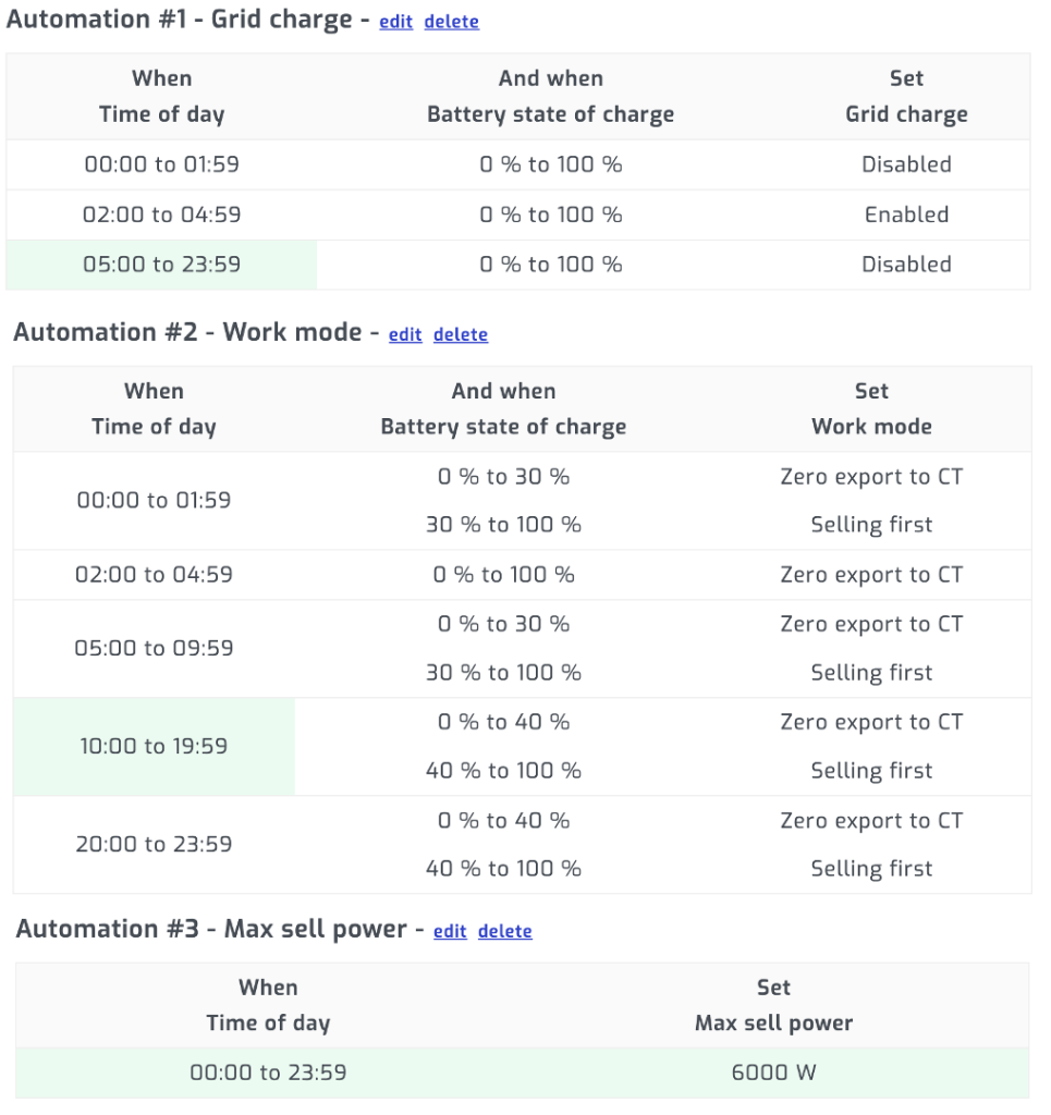 Edit - Strange, cant seem to get the automation working. Its switches the work mode but draws from the grid instead of using the battery entirely. When I switch the Work moder timer back on I can charge / discharge the battery with no issues. What is the trick to getting the automation working?