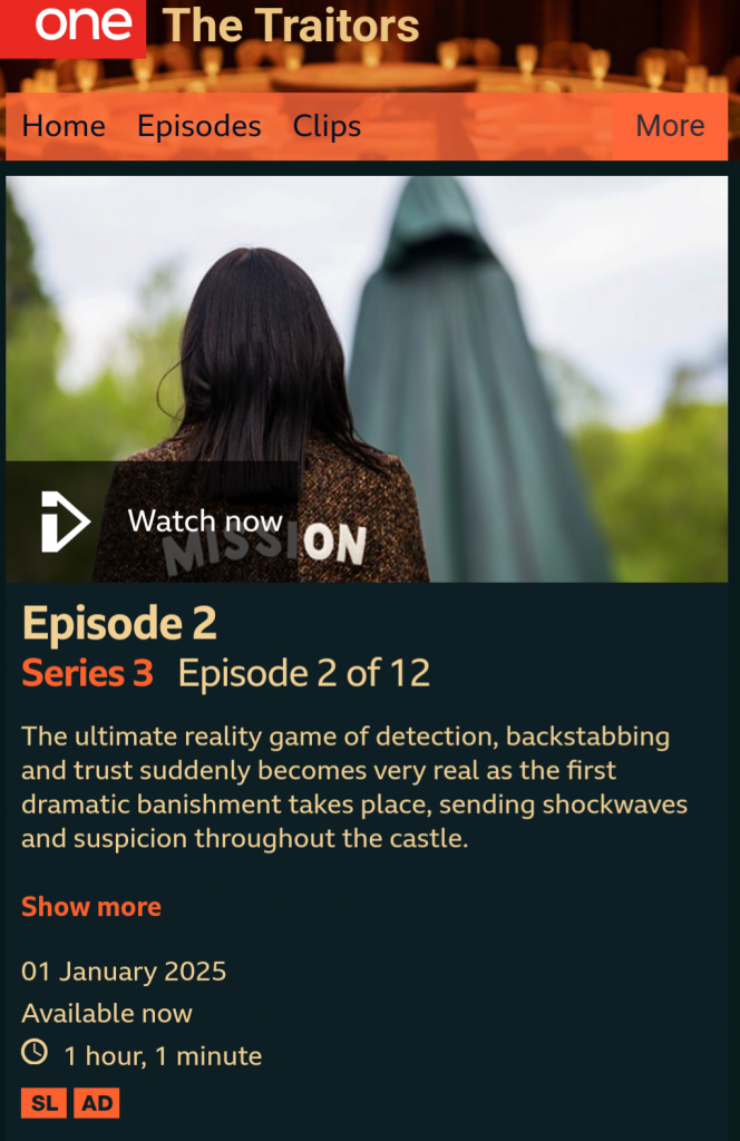 preffered ellie taylor on throwdown. not that I'm target market for traitors but mcsweeney presenting means won't even turn it on.