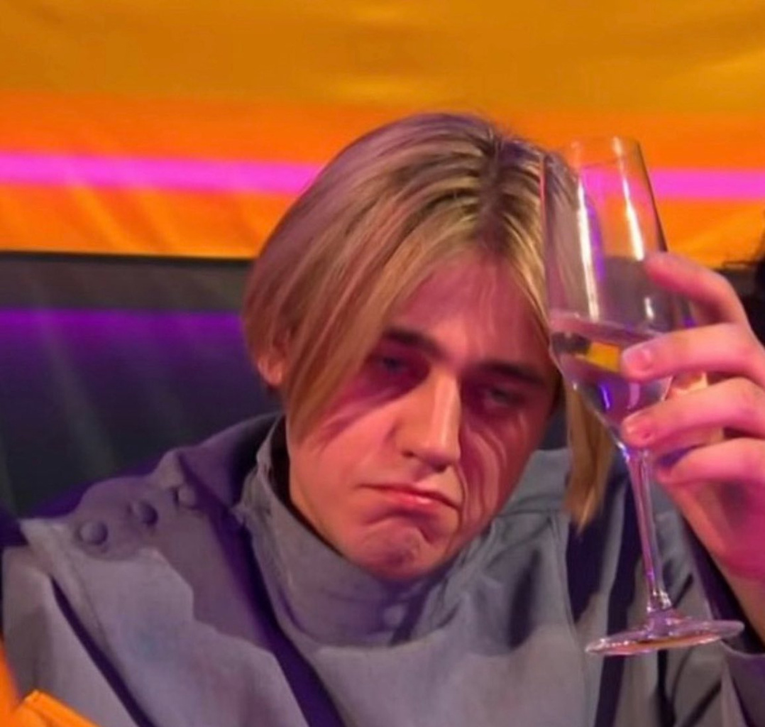 Who is the sad guy with the glass ?