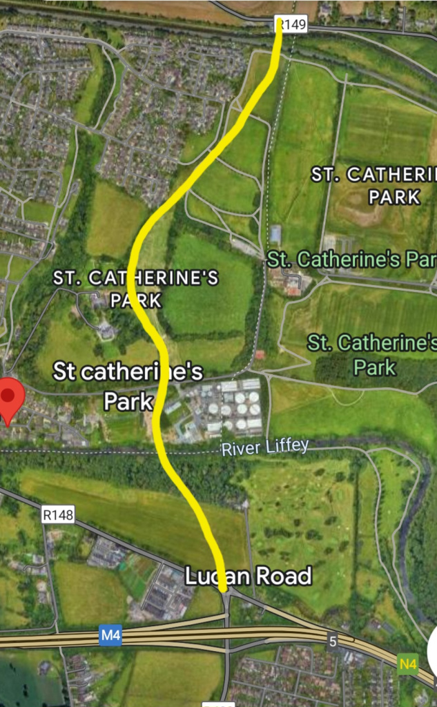 It is from the Roundabout at the end of the R149 beside Ongar and will tie in to the footpath beside the Gallops.