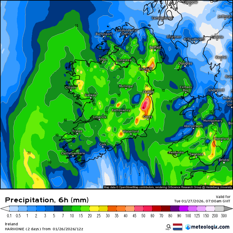 Even Harmonie 12z yesterday evening showed a large 20mm+ area over 6 hours over Dublin. That is more than enough of a signal for Met Éireann to issue a yellow rain warning for Dublin. We've seen plenty of times where we've had an orange rain warning for less and yes based on the criteria outlined (not that I agree with it, it's too heavily focused on pure numerical data with little consideration for impacts based on other parameters), an orange would have been a step too far but yellow absolutely should have been issued.