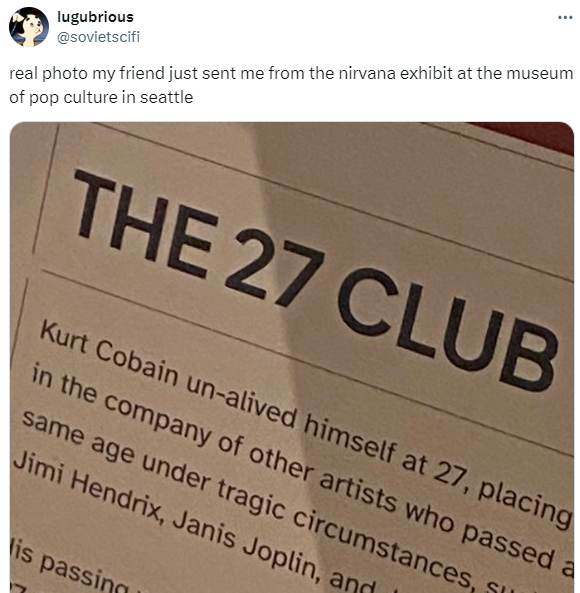 Pretty sure the Gen Z "unalive" thing came about because social media sites were censoring "violent words". Bit disconcerting to see it print though.