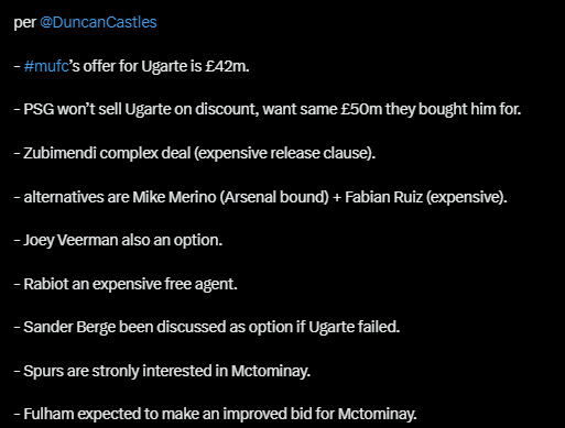 Ugarte and Amrbat with Scott gone? Does't make sense to me because, financially, we are then paying those 2, and Casemiro (a fortune) to play DM. Amrabat isn't good enough to be first choice, and if we can't get rid of case I can't see how we financially commit to a second dedicated DM signing. Rabiot can and does play further forward.