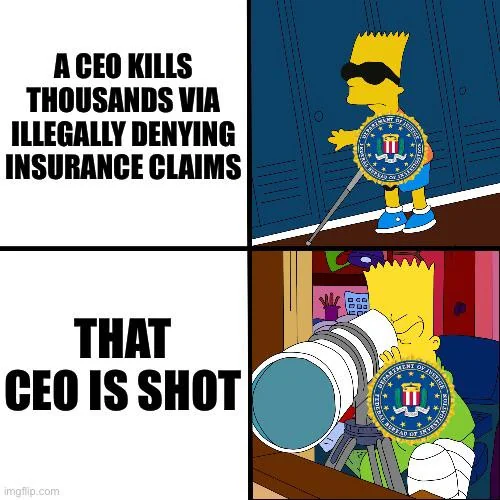 I knew US healthcare insurers weren't popular but there are so many people celebrating this killing. Apparently one of the other insurers deleted the webpage with the identities of their board/CEO. I've seen posts on Reddit saying this was a long time coming. I don't think it's wise to turn the shooter into some sort of folk hero when nobody knows for sure the exact motive behind this.