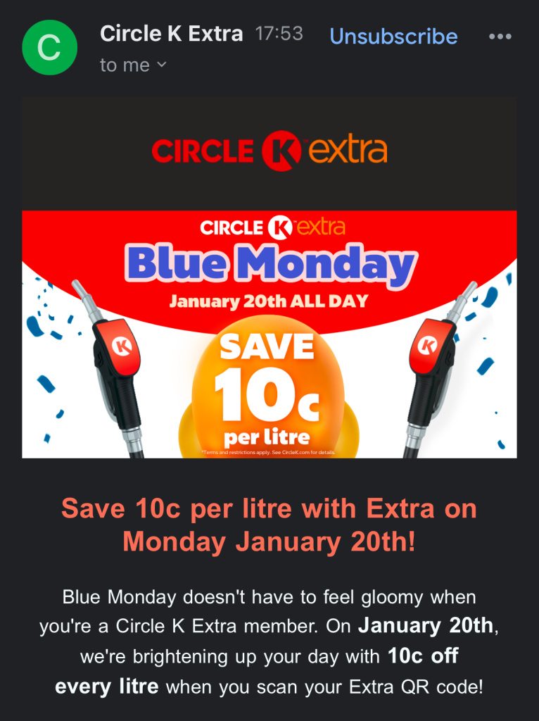 Circle K 10p off 20th Jan