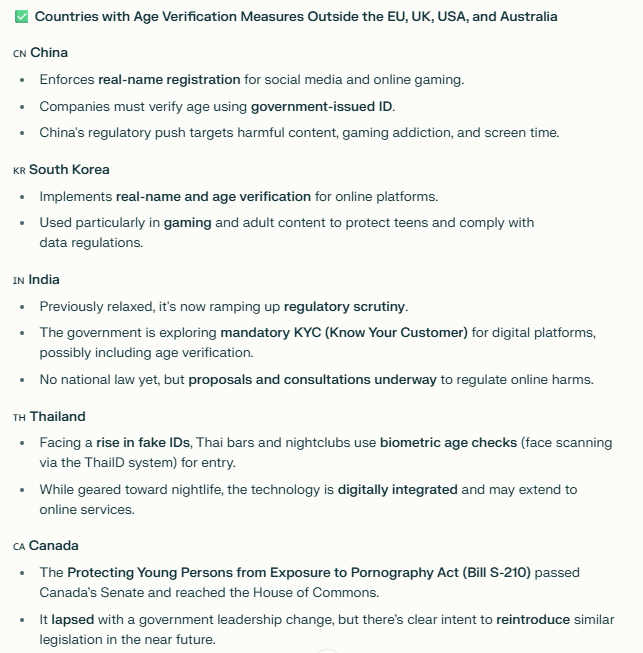 The uk/eu/usa/australia are not the only countries/regions to be implementing age verification.