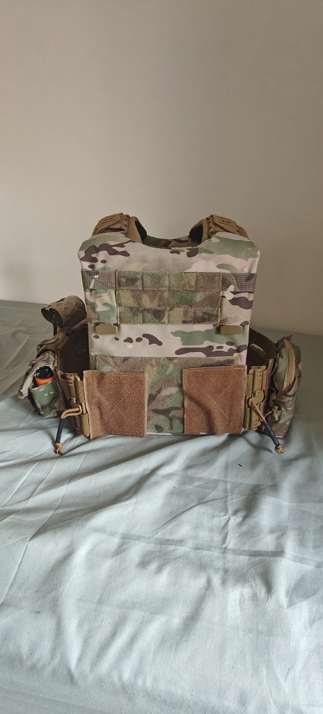 Repro LV119 plate carrier in Multicam comes with the side cummerbund and foam SAPI inserts and shoulder pads. Does not come with the pouches on the side!