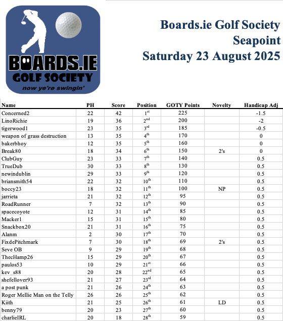 Boards Golf Society 2025 (Round 7) - Seapoint Golf Club - 16th August
