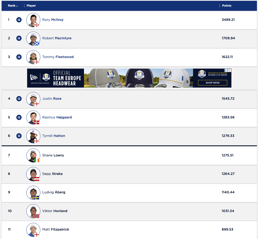 Donald if based up to today then it’s straka, hojgaard, Aberg, Hovland, Rahm are in.