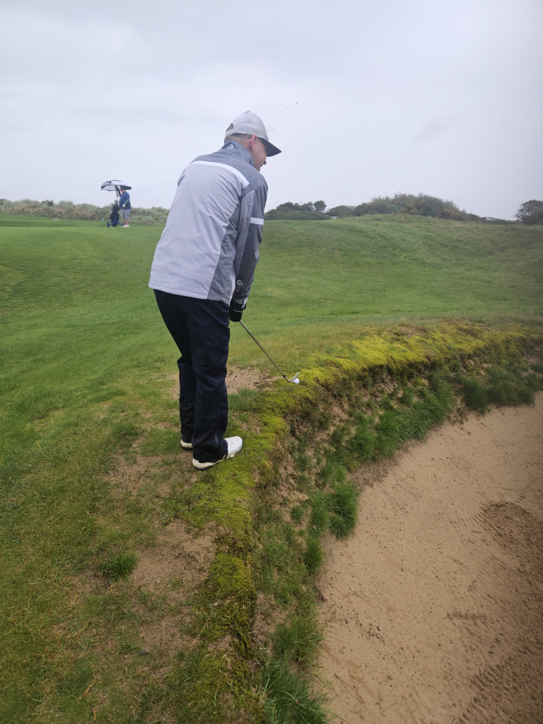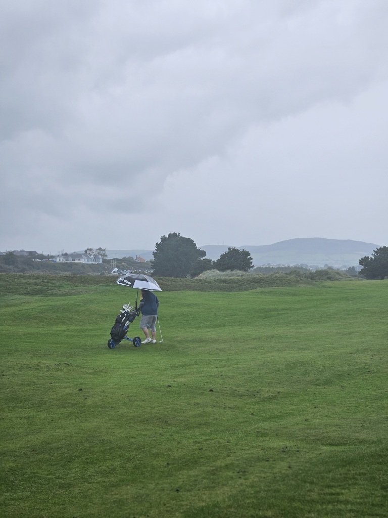 At times in Arklow , it looked like the rain might clear – but literally every time you took off your rain gear it would rain – soft ground on a links – is something I will struggle with. And did – but we still kept it going.