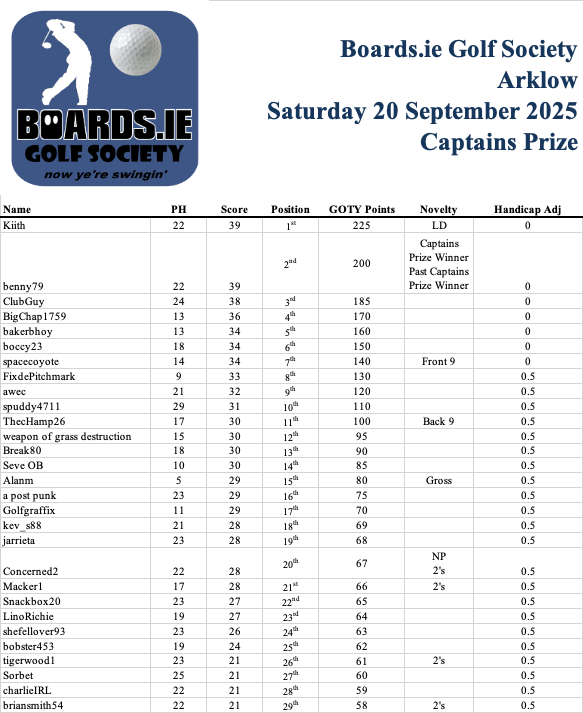 So comes to an end and adventurous and eventful year on the Boards Golf Society circuit, congratulations first and foremost to our incoming captain for 2026, Mr. @tigerwood1 , a stalwart of the group and I believe one of the OG's, looking forward to your year and to what courses we will step out onto next year. The very best of luck to you sir. A big thank you goes to the outgoing captain @Kiith , a very busy year for you at the helm, but overall it was a great year with a number of new courses ticked off and a really enjoyable captain's weekend.