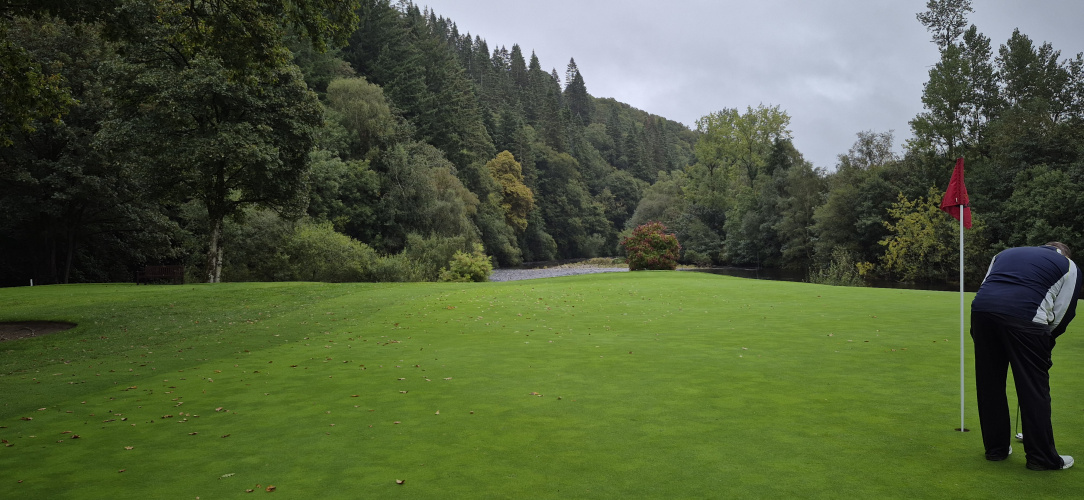 Made a slight change to the length of my driver on the 6th tee and from then on, it behaved very well. Played some good golf in the conditions and made use of my shots. Had an excellent par on the 14th and was 2 over 2's at that point. Felt I had weathered the day well, and tried to knuckle down as I knew Bakerbhoy was also playing steady. Good drive on 15 left me 200 yards away. With the pond in front decided to play sensible and lay up. Duffed my 3rd into said same pond for a scratch. Livid! Worst drive of the back 9 came then on 16. Found it and hacked out to make a 6 for 2. So no harm done. Melted a decent drive down 17 and a decent 3-w to just in front of the green. But instead of sticking with the putter option, tried to chip and skulled it over the green. Was unlucky on 18 as well as my second ended in a very heavy heater lie which cost me a shot. So 2 1-pointers to finish which was a small bit disappointing. But when I saw lots of others struggled was actually quiet proud of my day.